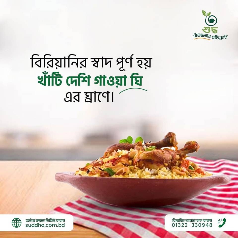 খিচুড়ি, বিরিয়ানি, পোলাও এবং অন্যান্য রান্নায় ঘি ব্যবহার করা হয়